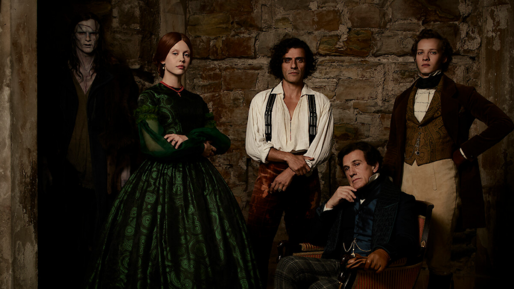 Nos créditos finais temos nove nomes: Oscar Isaac (Victor Frankenstein), Jacob Elordi (A Criatura), Mia Goth (Elizabeth), Felix Kammerer (William Frankenstein), David Bradley (homem cego), Lars Mikkelsen (Capitão Anderson), Christian Convery (Victor Frankenstein quando criança), Charles Dance (Leopold Frankenstein) e Christoph Waltz (Harlander).